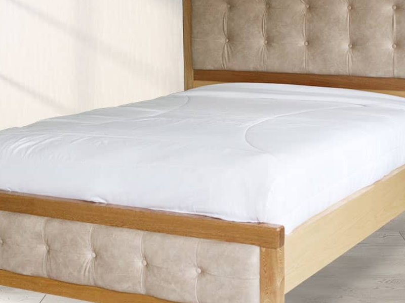 La cama Oikos Natural cuenta con un elegante diseño capitoneado, lo que le da un aspecto moderno y sofisticado. La madera natural aporta un toque cálido y acogedor al ambiente y la combinación de materiales y texturas agrega un estilo único a cualquier habitación.