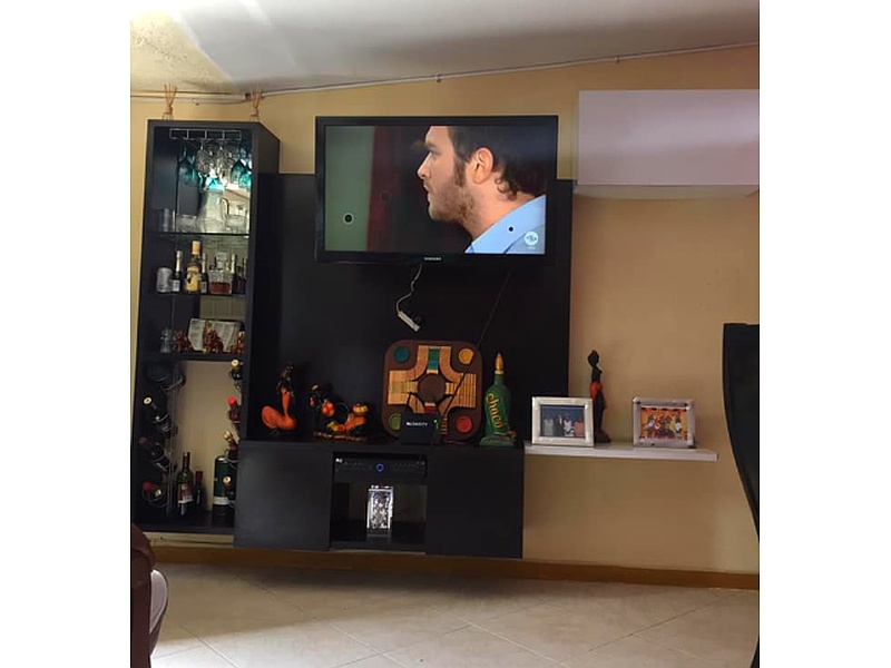 Añade un toque contemporáneo a tu sala de estar con este centro de entretenimiento moderno, ideal para organizar tus dispositivos y accesorios multimedia.
