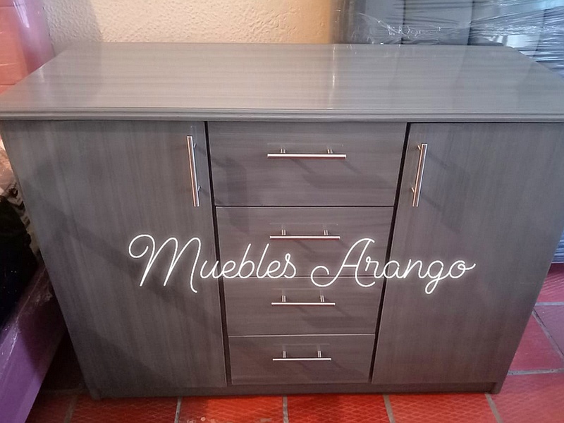 Cómoda Gris con 4 Cajones y 2 Puertas. Esta cómoda combina un diseño elegante con una funcionalidad práctica. En un sofisticado tono gris, ofrece cuatro cajones amplios para almacenamiento y dos puertas que revelan compartimentos adicionales