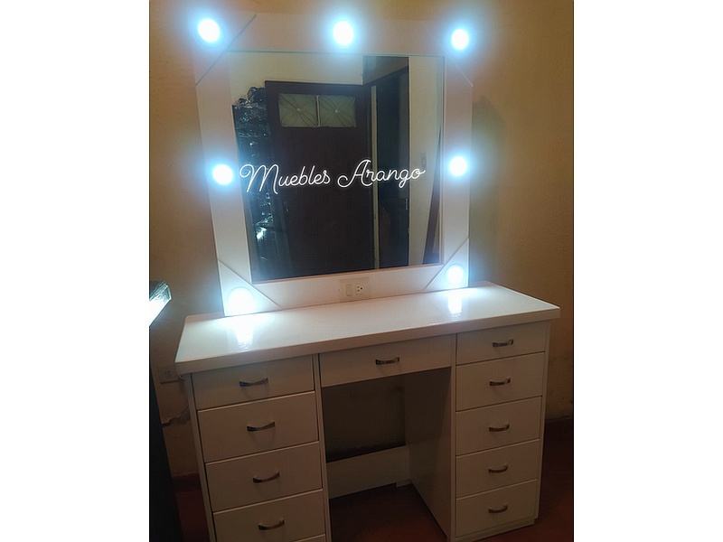 Peinador con Luces LED. Este elegante peinador está diseñado para ofrecer una experiencia de belleza y cuidado personal mejorada, incorporando luces LED integradas que proporcionan una iluminación clara y precisa.