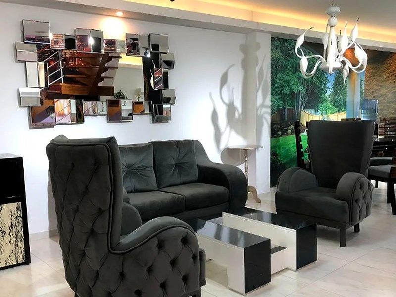 Con un conjunto de muebles que incluye sofás, mesas auxiliares y estantes, esta sala está diseñada para ser acogedora y elegante. Los materiales premium y el diseño contemporáneo aseguran que tu sala de estar sea un lugar perfecto para recibir a familiares y amigos.