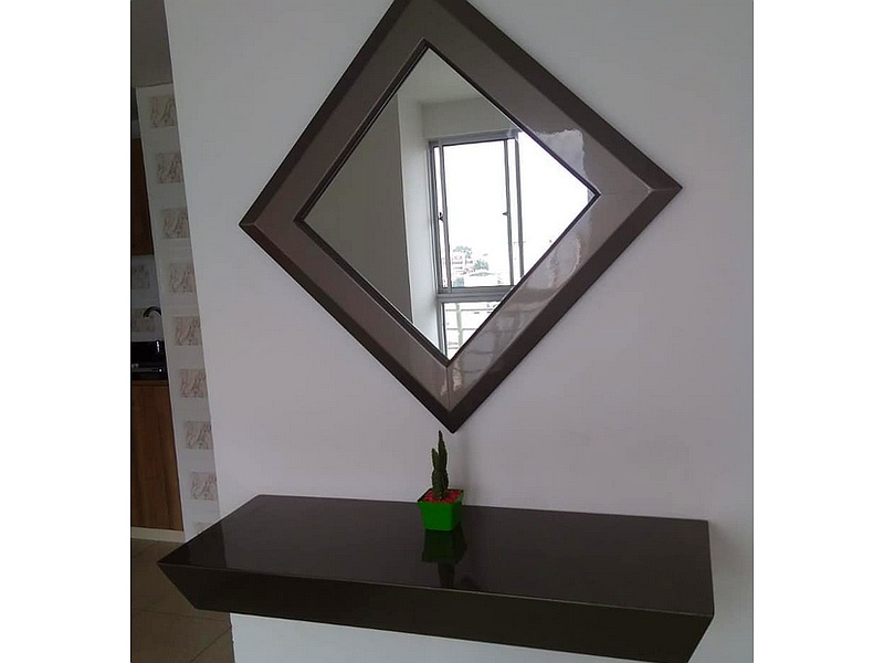 Este conjunto incluye una consola y un espejo, ambos acabados con pintura de poliuretano que proporciona una superficie lisa y duradera. La consola, ideal para entradas o salones, ofrece elegancia y funcionalidad con su acabado brillante. El espejo complementa el conjunto, añadiendo un toque de sofisticación y ampliando visualmente el espacio.