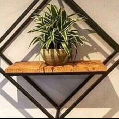Macetero de perfil metálico con estantería de madera, macetero individual