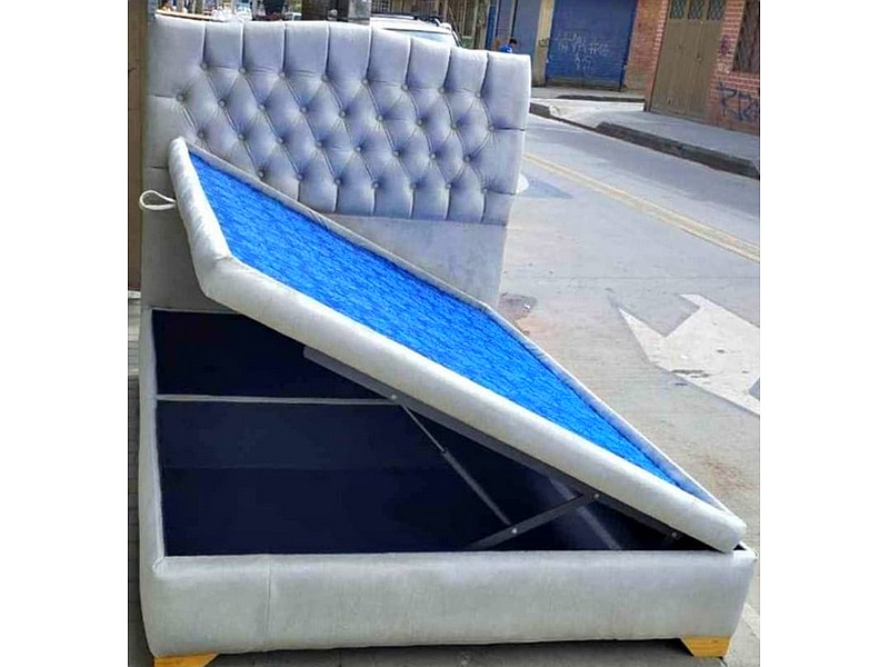 La cama baúl capitone en color celeste combina funcionalidad y estilo. Su diseño capitoneado ofrece un acabado elegante y sofisticado, mientras que el color celeste aporta una sensación de frescura y tranquilidad. Además, el compartimento de almacenamiento en el baúl permite guardar ropa o accesorios, maximizando el uso del espacio en tu dormitorio.