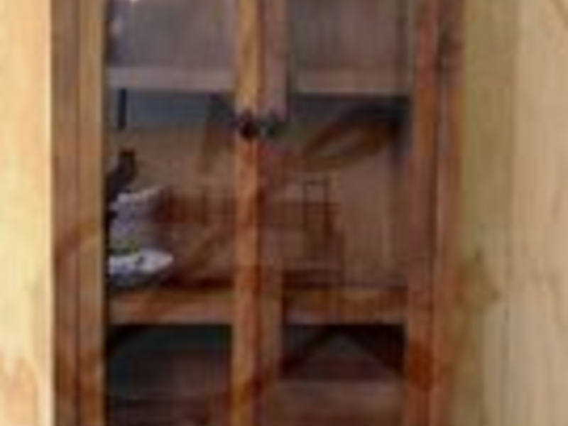 Un mueble de exhibición con paneles de vidrio para mostrar objetos decorativos o vajilla. Las medidas típicas son de 120-200 cm de altura, 60-120 cm de ancho y 30-60 cm de profundidad.