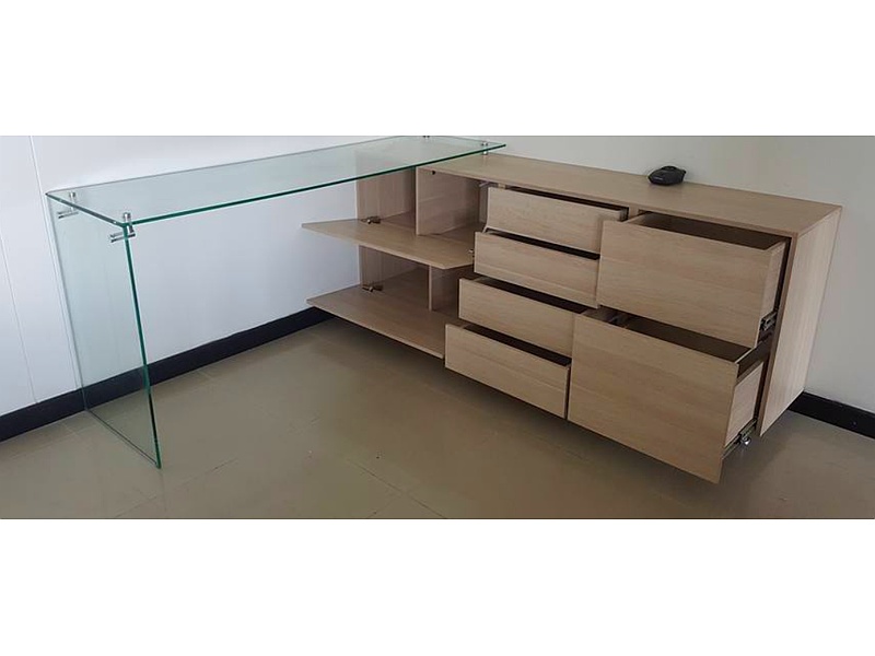 Este escritorio mixto con vidrio combina diseño moderno y funcionalidad para crear un espacio de trabajo elegante y sofisticado. La estructura, que puede incluir elementos en madera o metal en combinación con una superficie de vidrio templado, ofrece un contraste atractivo y una apariencia contemporánea. El vidrio proporciona un acabado limpio y luminoso, mientras que los materiales adicionales aportan robustez y versatilidad. Ideal para oficinas y estudios, este escritorio no solo mejora la organización y la eficiencia, sino que también añade un toque de estilo refinado y moderno a tu entorno.
