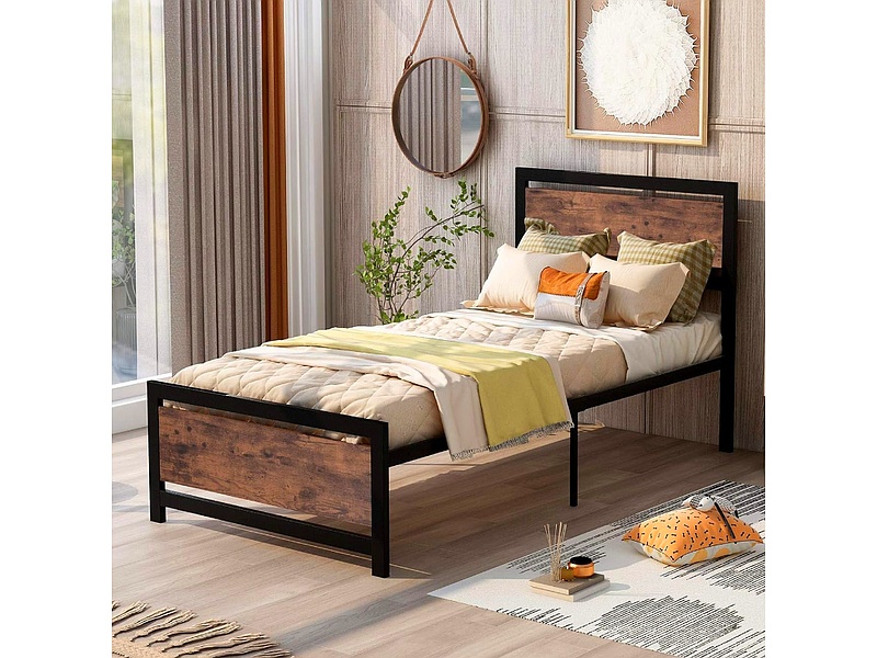 Cama individual de diseño sencillo, ideal para habitaciones de niños o para una persona. Su estructura robusta garantiza un descanso confortable.