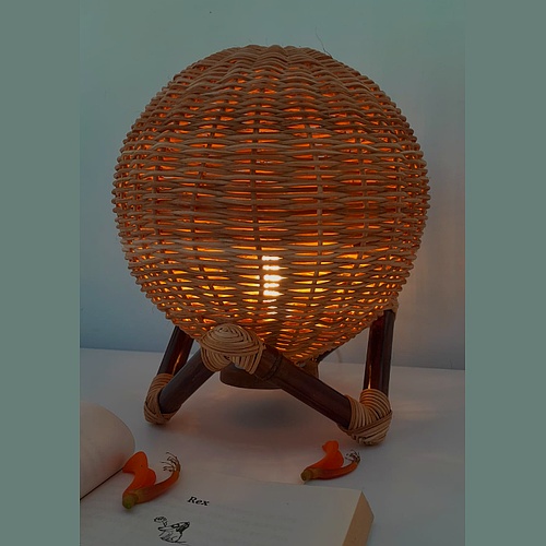Esta lámpara de mesa combina el encanto artesanal con un diseño moderno, presentando un globo tejido tipo canasta que envuelve la luz en una suave calidez. La base de madera añade un toque natural y sólido, complementando perfectamente el estilo rústico del tejido. La luz amarilla emitida crea un ambiente acogedor, ideal para iluminar espacios de lectura, mesas de noche o cualquier rincón que requiera un toque de calidez. La lámpara es una fusión de materiales naturales y diseño contemporáneo, ofreciendo tanto funcionalidad como un atractivo visual que realza la decoración de cualquier habitación.