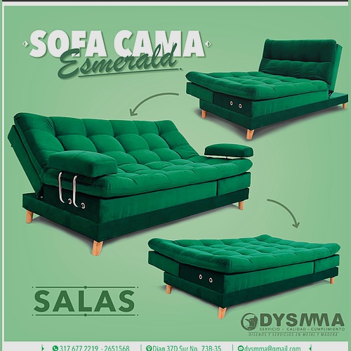 Este sofá cama en color verde esmeralda es una pieza versátil y elegante que combina confort y funcionalidad en un solo mueble. Su estructura de madera garantiza durabilidad, mientras que su tapizado en un vibrante verde esmeralda añade un toque de sofisticación y frescura a cualquier espacio. Diseñado para brindar comodidad durante el día y convertirse en una cama cómoda por la noche, este sofá cama cuenta con un sistema de apertura que permite una reclinación del 100%, transformándose en una superficie amplia y acogedora para descansar. Su diseño lo hace ideal para salas de estar, habitaciones de huéspedes o cualquier lugar donde se necesite un mueble multifuncional sin sacrificar el estilo.