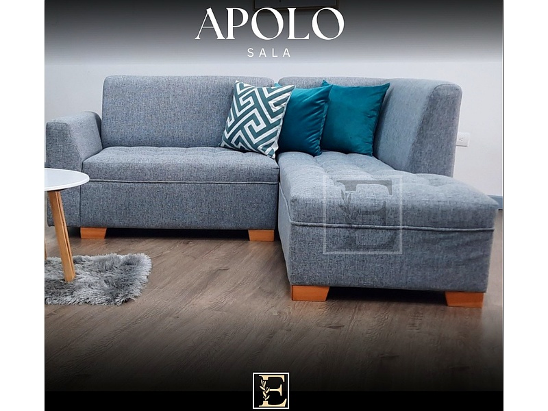 Sofá de dos plazas en forma de L color gris para sala de estar.