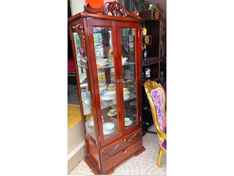 VITRINA EN MADERA CON VIDRIO PARA VAJILLA