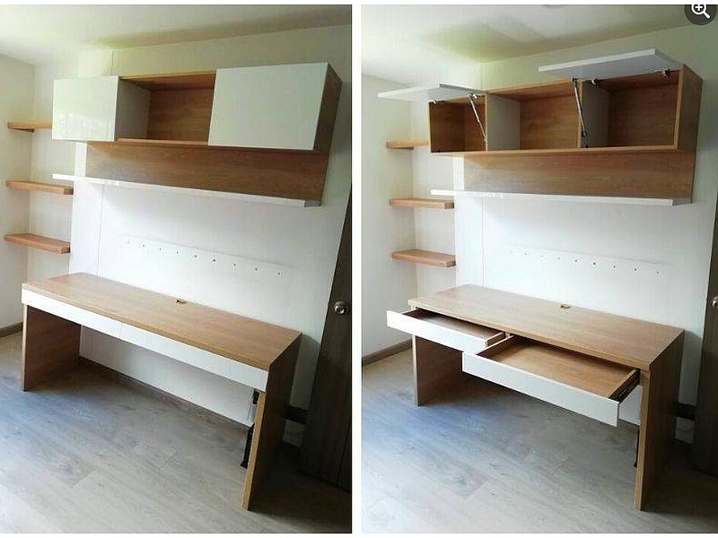 Optimiza tu espacio de almacenamiento con este escritorio con estantería integrada, ideal para mantener tus libros y suministros organizados.