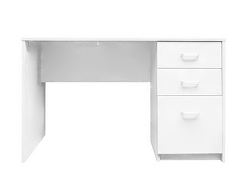 Un escritorio compacto y funcional con acabado blanco, ideal para espacios de trabajo o estudios. Su color blanco aporta una sensación de amplitud y luminosidad.