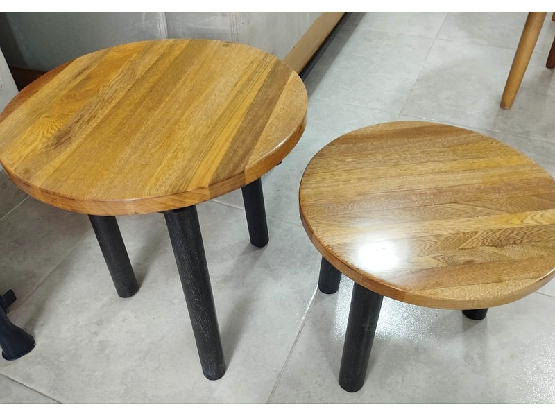 Mesa de madera circular baja
