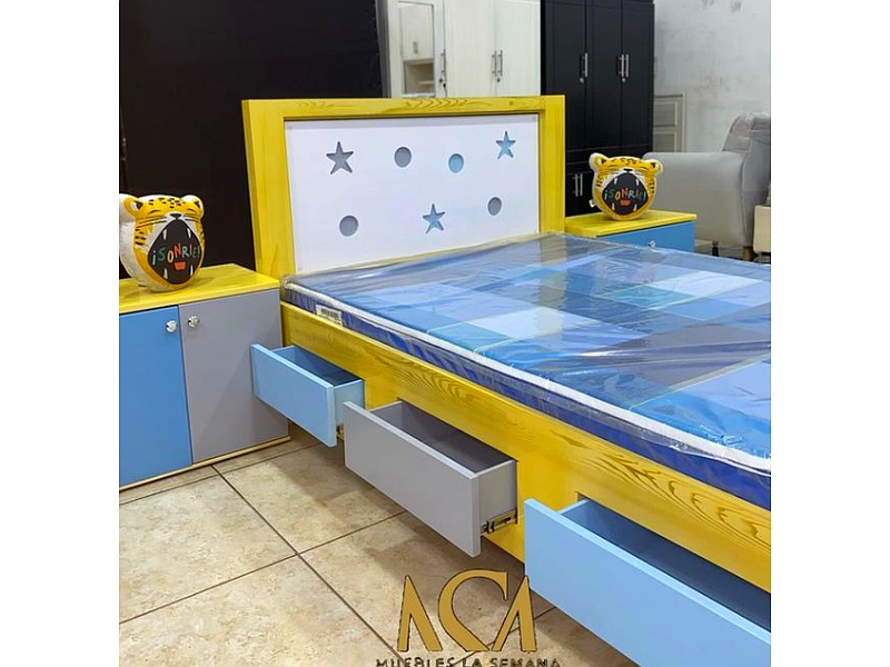 Esta cama infantil combina diseño funcional y atractivo, ideal para el dormitorio de los más pequeños. Con un diseño robusto y seguro, ofrece un espacio cómodo y seguro para que los niños descansen. Disponible en varios colores y estilos, se adapta a diferentes temas de decoración, añadiendo un toque lúdico y alegre a la habitación. Fabricada con materiales de alta calidad, garantiza durabilidad y confort, convirtiéndose en una pieza esencial para el bienestar y la alegría de los más jóvenes.