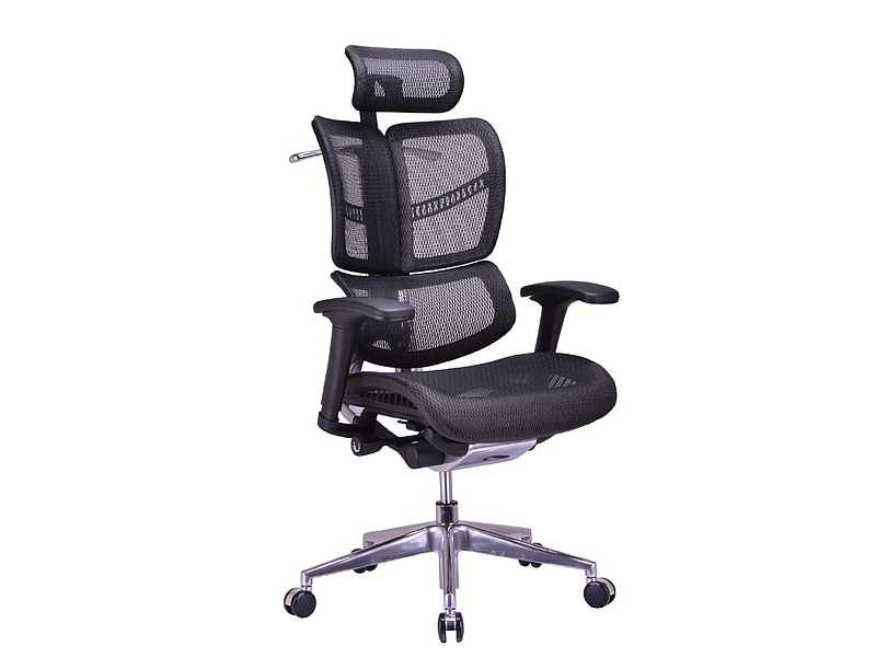 Silla de oficina ajustable con soporte lumbar y reposabrazos, diseñada para proporcionar comodidad durante largas horas de trabajo. Tapizada en cuero sintético para un aspecto profesional.
