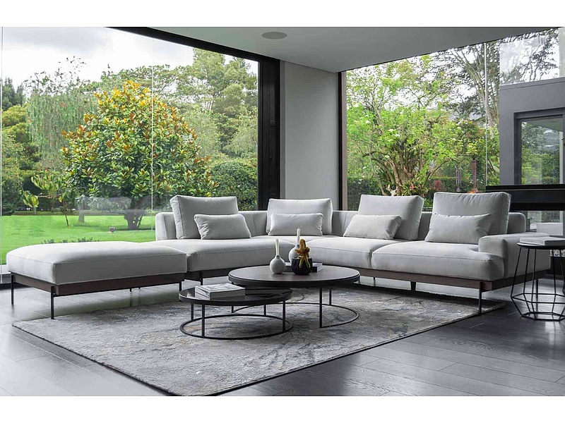 Un sofá versátil con módulos que se pueden reconfigurar según las necesidades del espacio. Tapizado en un tejido suave y resistente, ideal para adaptarse a diferentes estilos de decoración.