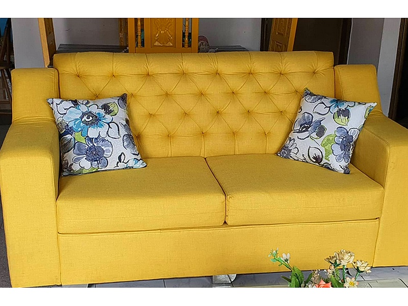 El sofá 2 puestos presenta un diseño capitoné en color amarillo, combinando estilo y confort. Su tapizado capitoné añade una textura elegante y sofisticada, mientras que el vibrante color amarillo aporta un toque de frescura y energía al espacio. Ideal para quienes buscan un sofá compacto y distintivo que ofrezca tanto estética como comodidad.