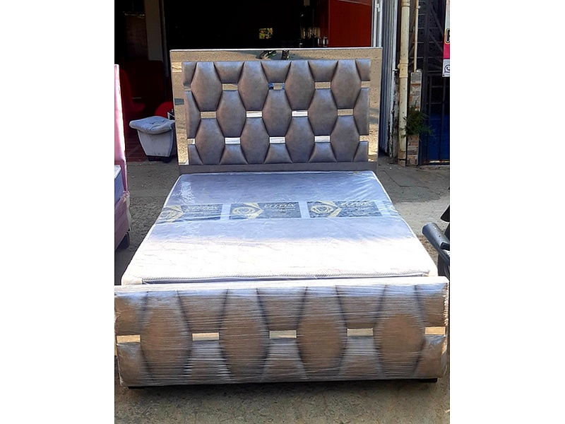 La cama capitoné espejo es una pieza de mobiliario lujosa y elegante que combina el diseño clásico del capitoné con detalles modernos de espejo. Su cabecera tapizada en capitoné presenta un patrón de botones acolchados que añade textura y sofisticación.