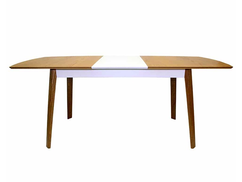 Mesa de comedor moderna y funcional, fabricada en madera maciza. Su diseño extensible permite acomodar hasta ocho personas, perfecta para cenas familiares o eventos especiales.