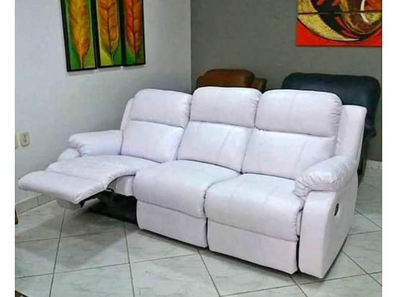 Sofá de tres plazas reclinable color blanco para sala de estar.