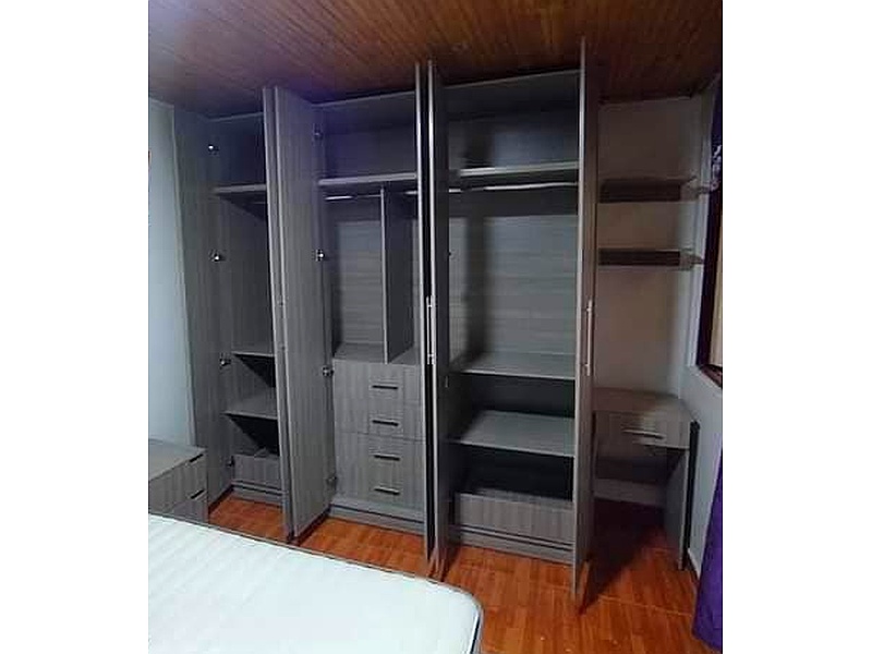 Opta por una solución práctica y moderna con este ropero de melamina, ideal para dormitorios contemporáneos.
