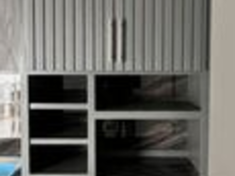 Un armario moderno gris es un mueble de almacenamiento elegante y funcional, ideal para dormitorios. Suele estar hecho de MDF o madera laminada, con puertas de cierre suave y opciones de almacenamiento versátiles como cajones y estantes ajustables.