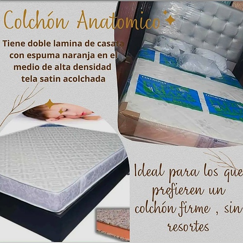 Descubre el confort y el soporte excepcionales con el Colchón Anatómico Doble Lámina. Este colchón está diseñado para ofrecerte un descanso óptimo, combinando tecnología avanzada con materiales de alta calidad. La espuma de alta densidad en color naranja proporciona una base firme y resistente, adaptándose a la forma de tu cuerpo para un soporte anatómico que alivia puntos de presión y mejora la calidad del sueño.