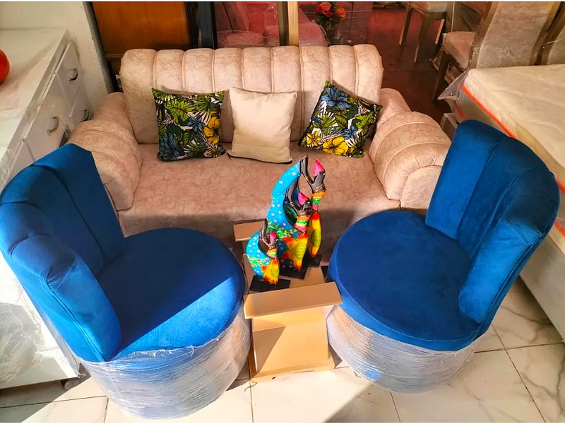 El sofá lineal ofrece espacio para descansar, mientras que las dos poltronas complementan el conjunto con su elegancia clásica. Una opción perfecta para una sala acogedora, donde la comodidad y el diseño se encuentran.