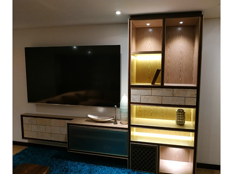 Centro de entretenimiento con almacenamiento lateral para sala de estar.