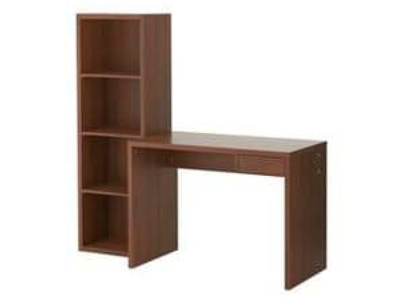 Escritorio café con estanterías