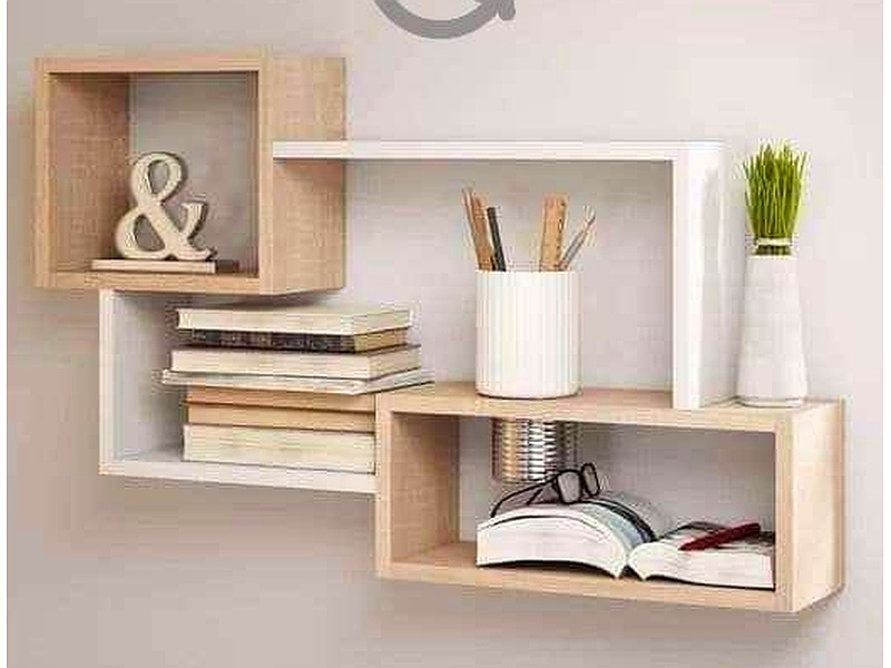 Repisa Rectangular café claro y blanco