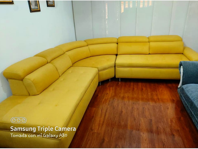 Agrega un toque de color y energía a tu sala con este sofá esquinero amarillo. Su diseño único y vibrante lo convierte en el centro de atención de cualquier estancia.