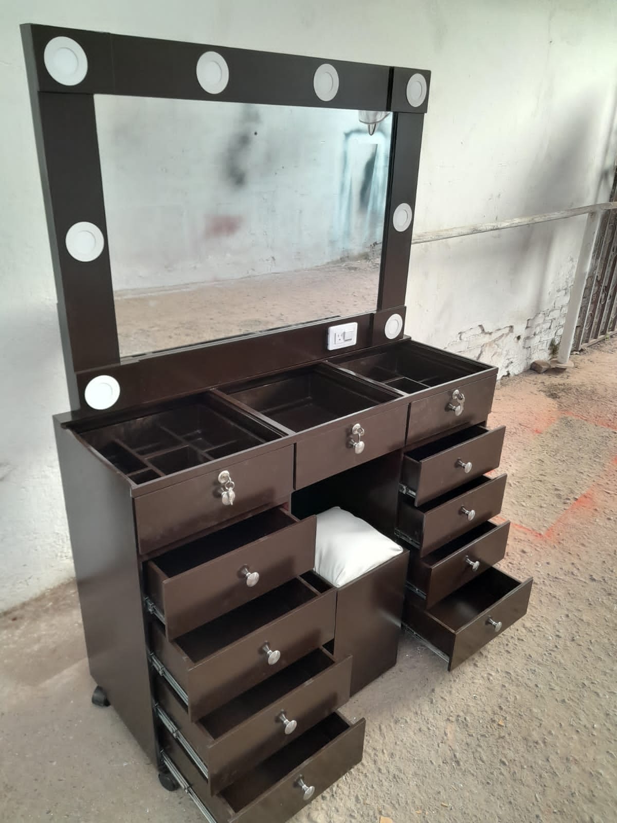 El Tocador Hollywood es una pieza icónica que aporta glamour y funcionalidad a tu espacio. Equipado con un espejo grande y luces LED integradas, este tocador ofrece una iluminación impecable para tus rutinas de belleza y cuidado personal.