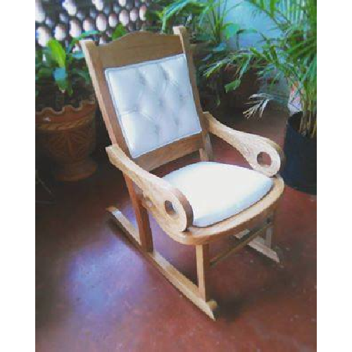 Silla de madera tipo mecedora con cojines fijos de color blanco