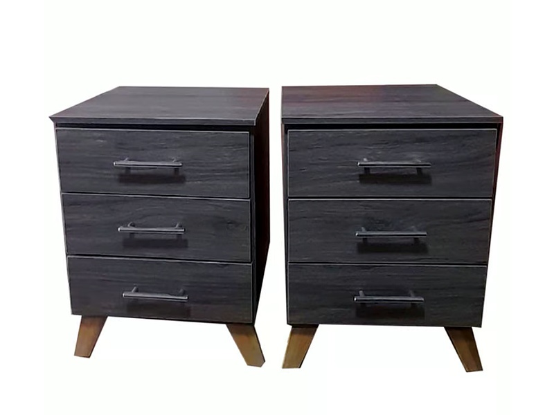Una mesa de noche compacta con dos cajones, perfecta para guardar objetos personales al lado de la cama. Disponible en varios acabados para combinar con cualquier dormitorio.