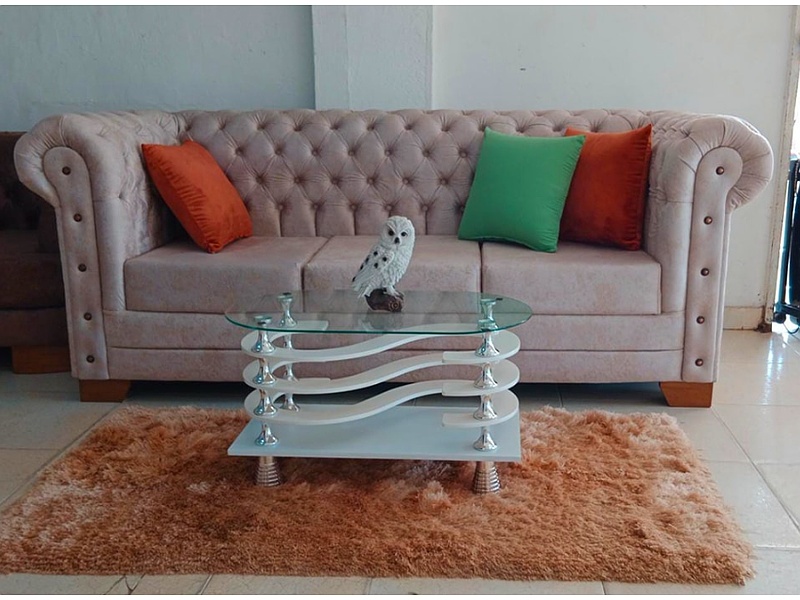 Con su diseño capitoné en el respaldo y los brazos enrollados, este sofá agrega un toque de sofisticación a cualquier sala de estar
