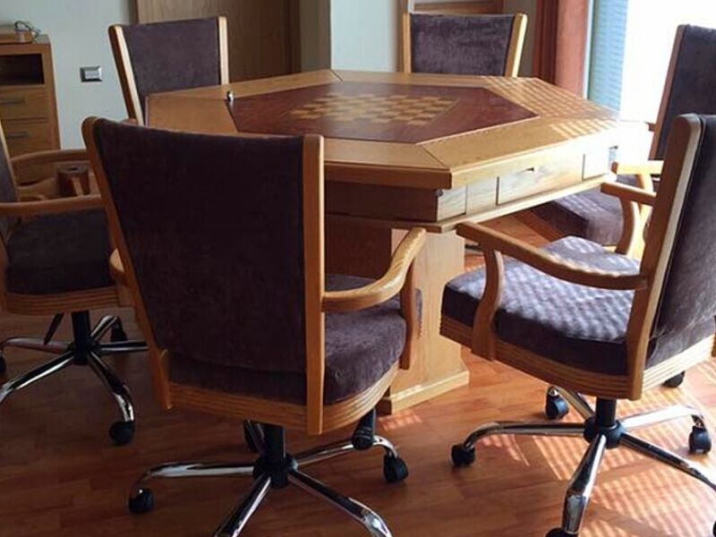 Una mesa de conferencia espaciosa y funcional, diseñada para reuniones profesionales o de trabajo en equipo. Fabricada en madera maciza o laminada, con capacidad para alojar cómodamente a varias personas y equipada con acceso a cables para dispositivos electrónicos.