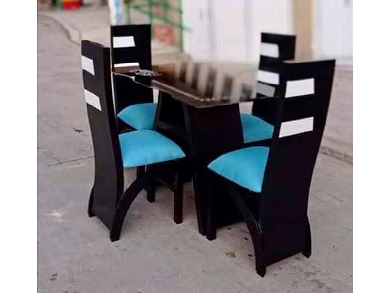 Este comedor presenta una mesa de madera en color negro, combinando elegancia y modernidad. Su diseño en negro ofrece un toque sofisticado y contemporáneo, ideal para crear un ambiente distinguido y a la moda en cualquier comedor.