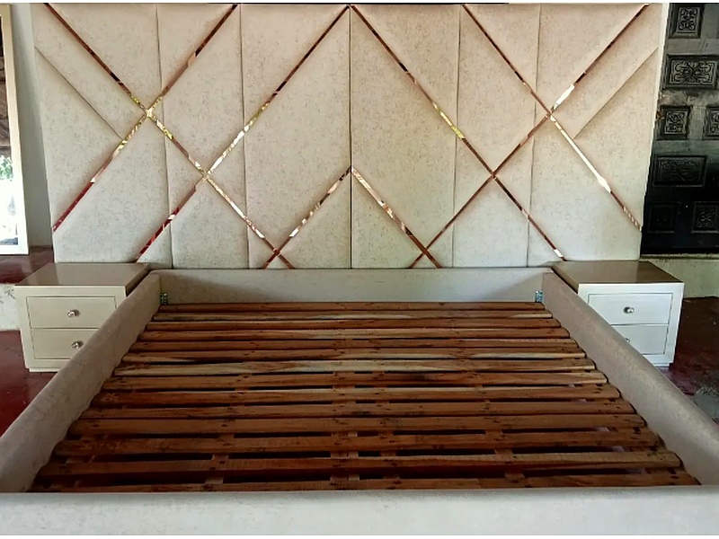 Su cabecero tapizado en tela de lino añade un toque de lujo y confort.