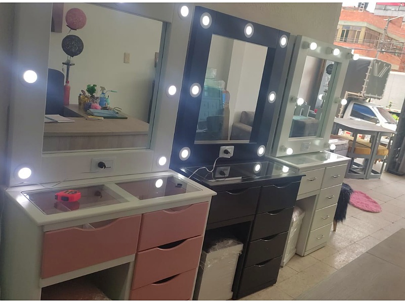 Con un amplio espejo y varios cajones, este tocador ofrece espacio de almacenamiento y un diseño elegante que se adapta a cualquier tipo de decoración.