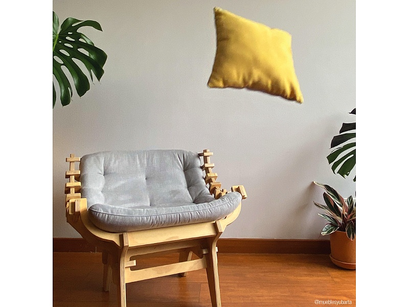 Poltrona de madera sostenible color gris para el hogar.