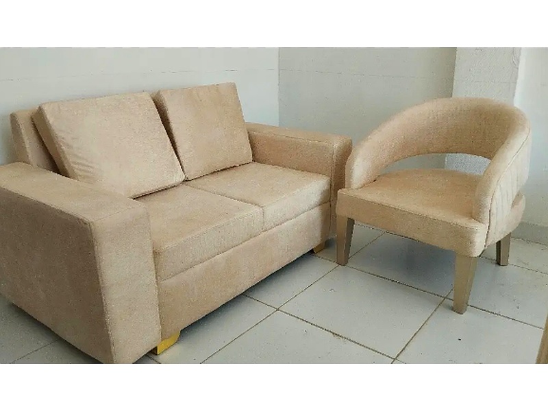 sofá de dos o tres puestos+ poltrona + mesa de centro Elaborado en madera roble.