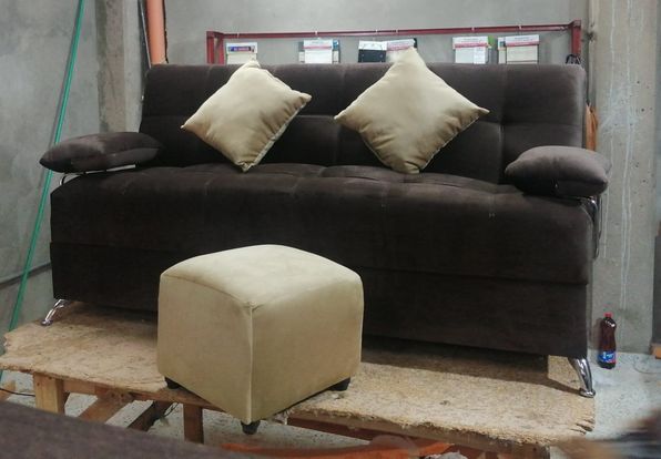 SOFA CAMA BASE ALTA MÁS PUFF Y COJINES $500.000