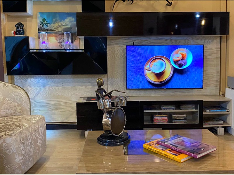 Moderno mueble para TV con compartimentos adicionales, ideal para organizar dispositivos electrónicos y accesorios.