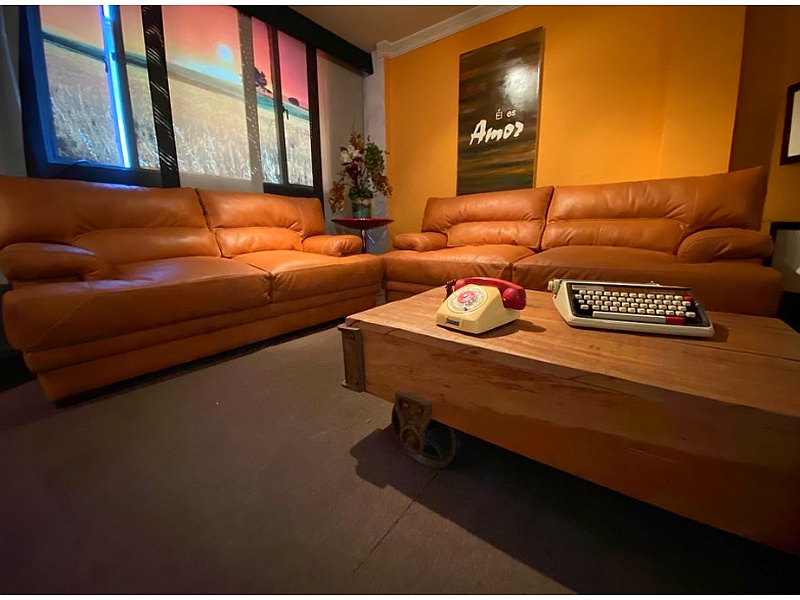 Disfruta del confort y la elegancia con esta sala en cuero genuino tono café. Su diseño contemporáneo y acabado de alta calidad la convierte en el centro de atención de cualquier sala de estar.
