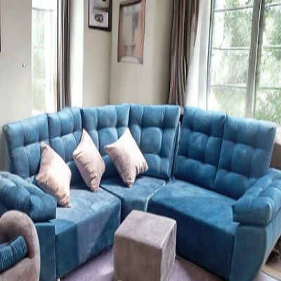 El sillón esquinero de lino azul es un mueble diseñado para adaptarse a las esquinas de una habitación, ofreciendo un asiento cómodo y elegante. Tapizado en lino azul, combina la textura suave y transpirable del lino con un color vibrante y moderno, ideal para añadir un toque de estilo y confort a cualquier espacio.
