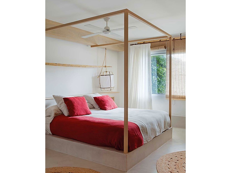 Cama con estructura de dosel que añade un toque elegante al dormitorio. Incluye cortinas opcionales para mayor privacidad y un diseño que destaca en la decoración.