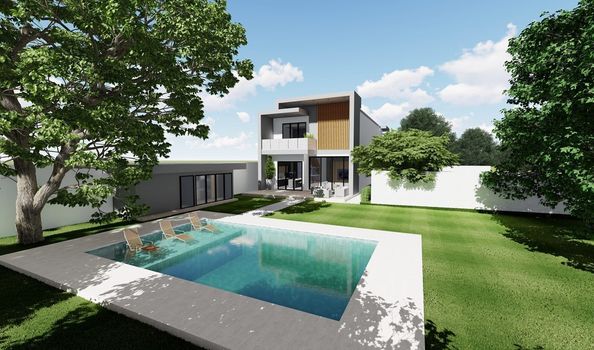 Diseño de casa de dos plantas. Se propuso una doble altura en la ante sala, espacios altos y abiertos para generar amplitud. Áreas comunes, áreas de servicio, áreas privadas, áreas húmedas, área social.