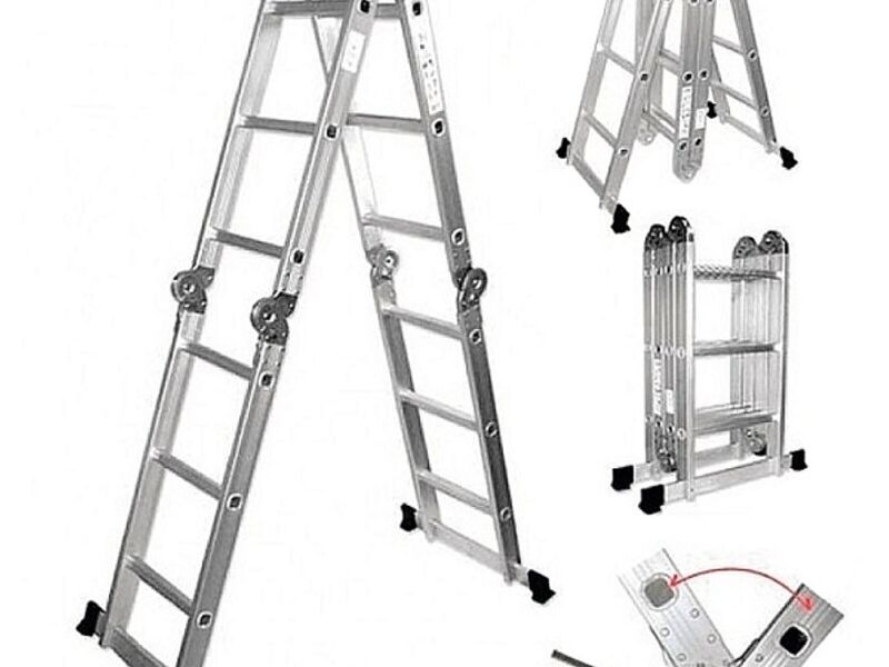 Escalera aluminio: Escalera portátil y plegable fabricada en aluminio ligero, utilizada para acceder a áreas elevadas en interiores y exteriores. Disponible en diferentes alturas y capacidades de carga.